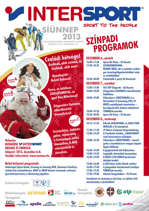 - Sípróba kicsiknek és nagyoknak: A Magyar Sí Szövetség szakmai támogatásával minden érdeklődőnek lehetőség nyílik az "Óriási sísánc" kipróbálására.