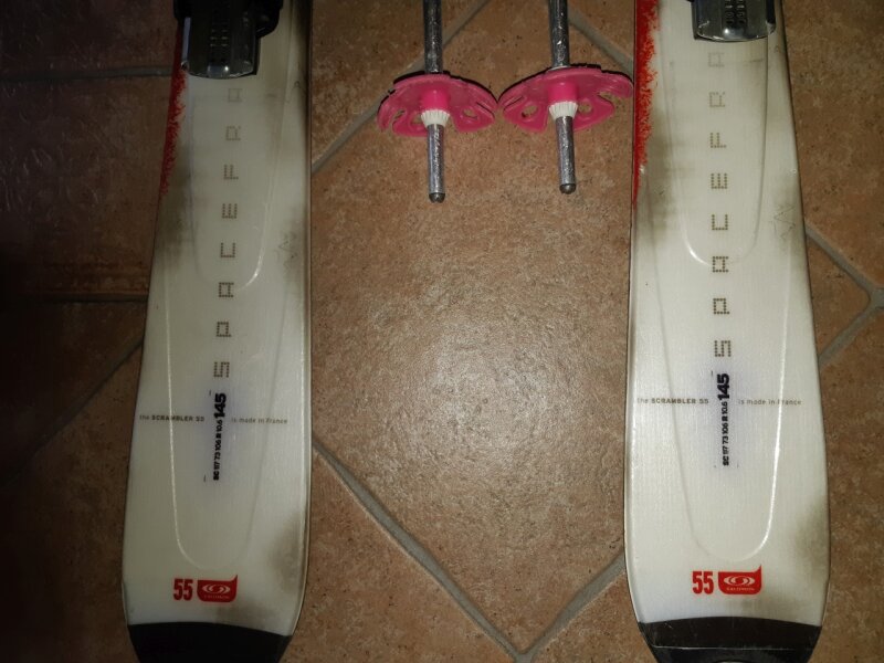 Betegség miatt eladó síléc: Salomon Scrambler model 55 (145 cm) - 2019-ben volt használatban utoljára, azóta levakszolva fektetve áll a szekrényben, 8 éves léc