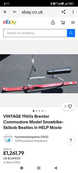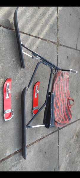 Karasek Ideal VINTAGE snowbike (hóbicikli) a '60-as évekből hibátlan,megkímélt állapotban a gyári zsákjával eladó.Szétszedhető így az (eredeti!) hordtáskában (megvan) könnyen elfér.Eredeti fogantyú,eredeti ülés,hibátlanok a talpak alul,felül egyaránt.Még a gyári Karasek Ideal papírmatrica sem ázott le róla a 60 év alatt.Rá kell ülni mint a biciklire,kormányozható és a két kis lécet a sícipőre kell csatolni.Saválló,semmi rozsda nincs rajta.Újszerű!