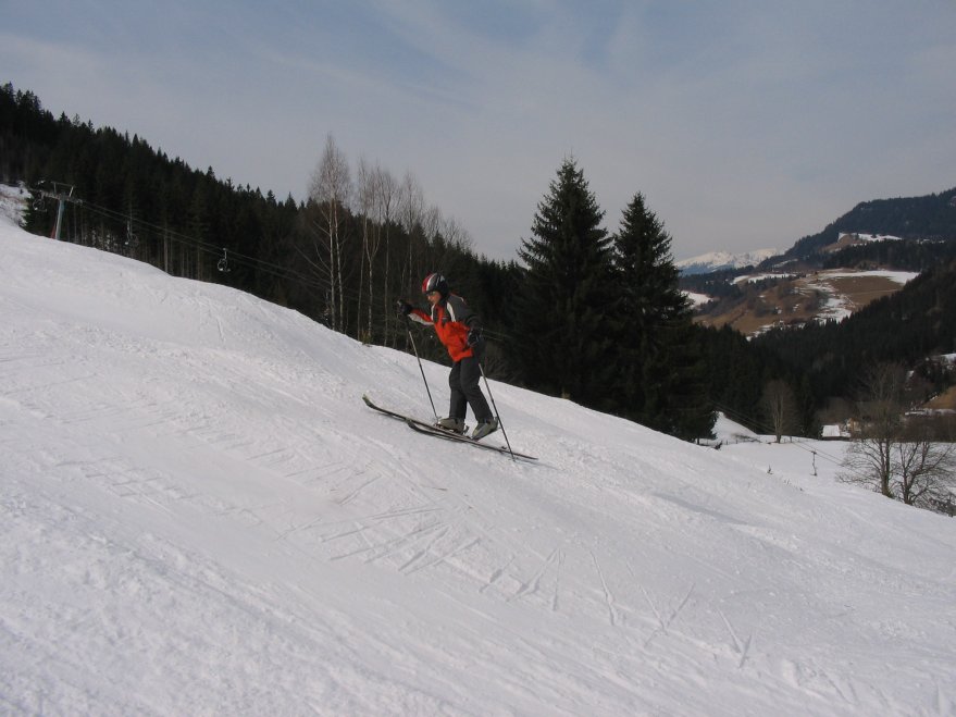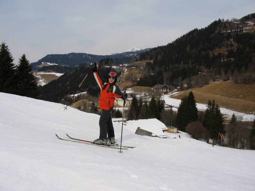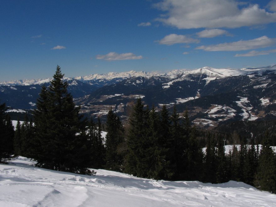 A másik, eredetibb túra a verditz-re felmenni. Ez még egy kicsit messzebb van a Fakeer-see-től. Afritzban, a hotel Mirnocknál le kell térni a főutról, majd a teniszpályáknál lévő parkolóból szoktak elindulni túrasível. Az egyik képen pont ez van, lehet látni a nyomokat fel a dombon, be az erdei út felé. A csúcsról tovább lehet menni másik csúcsok felé, vagy le lehet sielni a valamikori (tavaly már bezárt, de azért sielhető) Verditz-i sípályán a főutig. Nyáron mountain-bike versenyeket csinálnak itt, meg nyári bobpálya van.