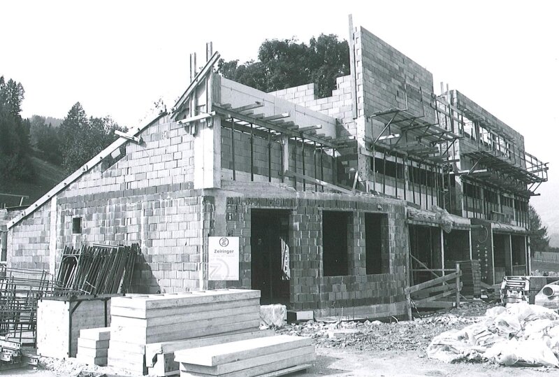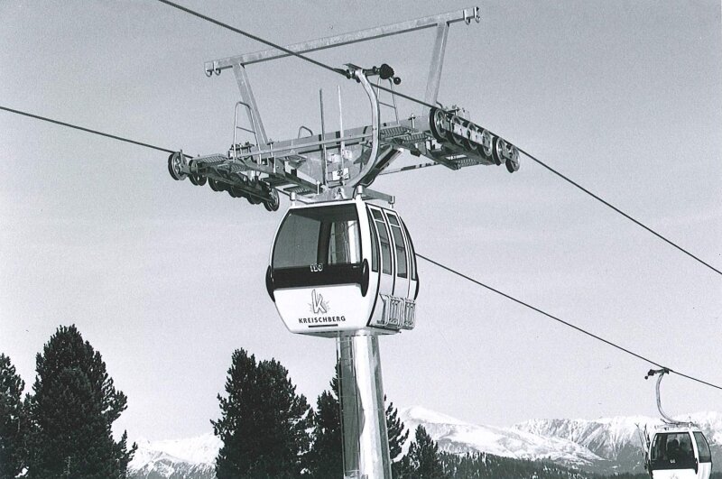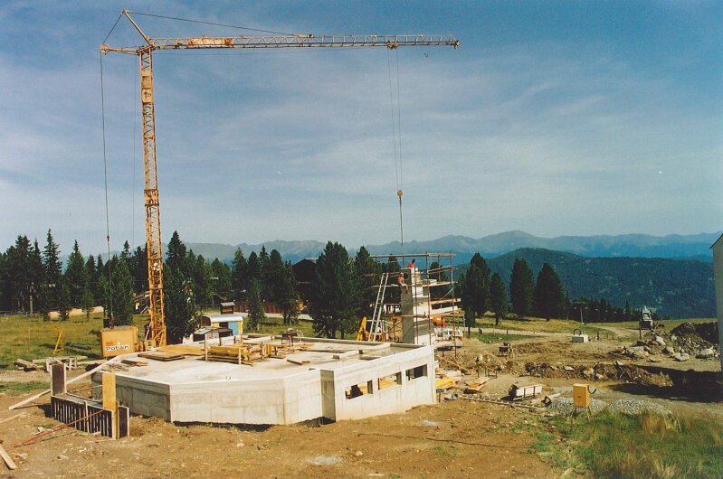 A Rosenkranz ülőlift egyik tartóoszlopának építése 1994-ben