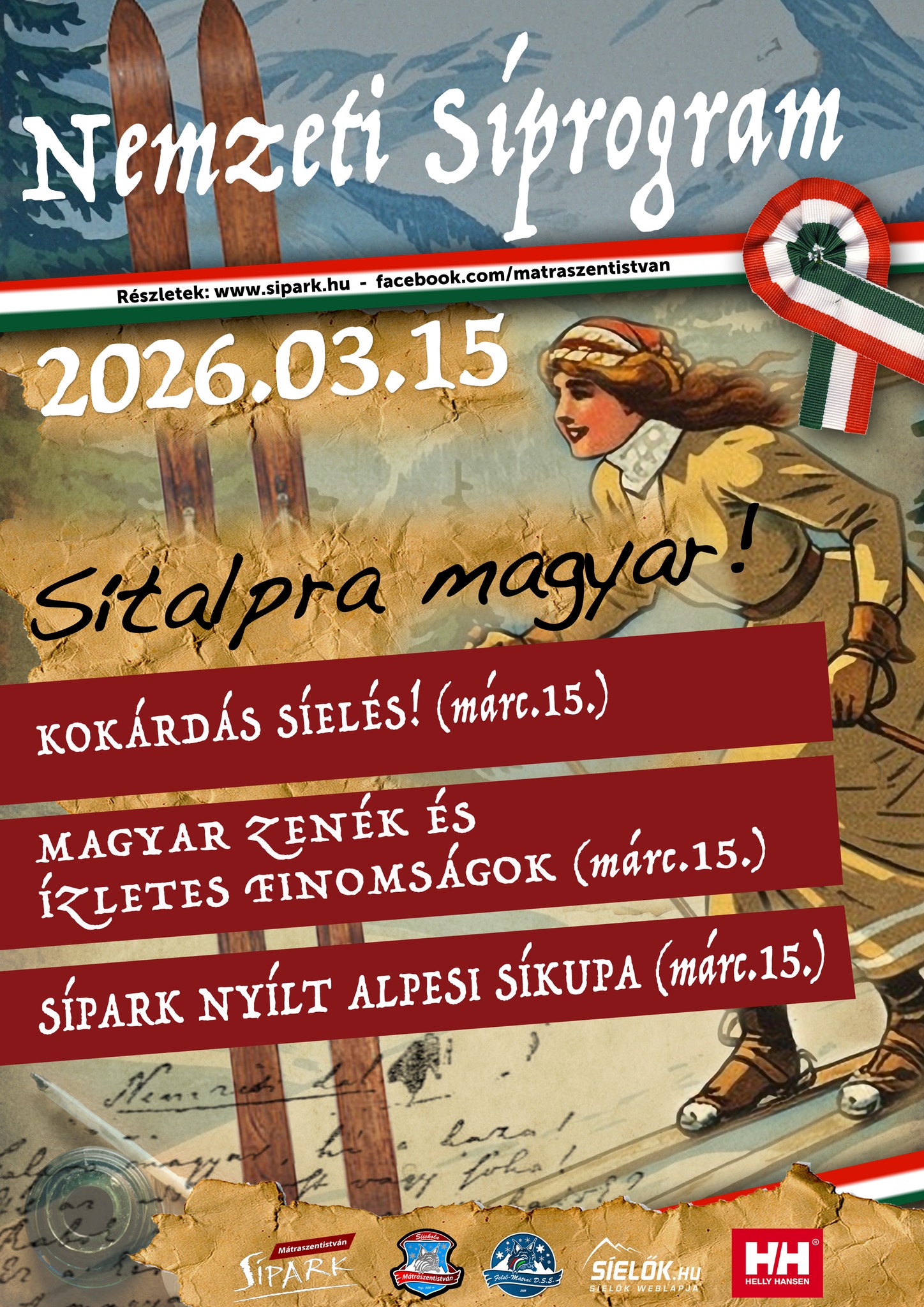 A hajnali fagyok továbbra is lehetővé teszik, hogy a márciusi napsütés ellenére lehet síelni a Mátrában. A Mátraszentistváni Sípark március 15-én különleges programmal várja a síelőket: a „Sítalpra magyar!” eseményen kokárdás síeléssel és a Sípark Kupa nyílt amatőr alpesi síversenyével ünnepelhetnek az odalátogatók!