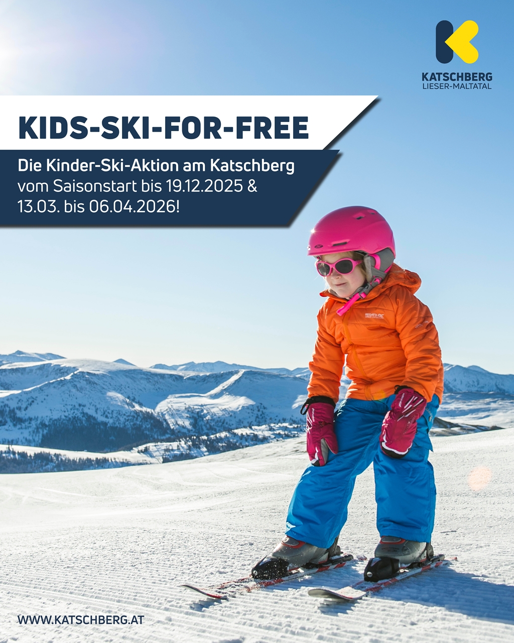 A Katschberg „Kids Ski for Free” akciója keretében 2010-ben vagy később született gyermekek ingyenes síbérletet kapnak, ha az egyik szülő legalább 5 napos felnőtt síbérletet vásárol. Szülőnként egy gyermek jogosult az ingyenes bérletre, így akár többgyermekes családok számára is vonzó az ajánlat.