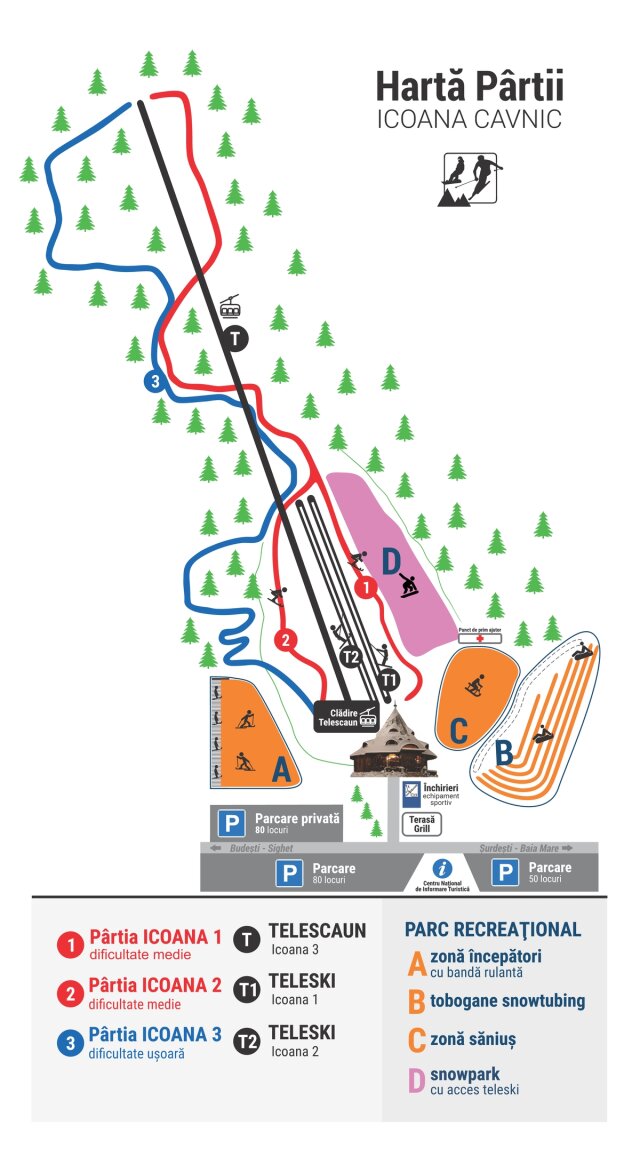 A kapnikbányai síterepre az átsíelés csak erdei utakon lehetséges. A pályákat hóágyúzzák és világítás is van.