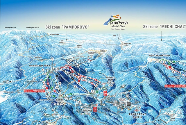 Az 1650 méter magasan fekvő Pamporovo Európa legdélibb síterepe, egyben Bulgária leginkább napsütötte hegyi üdülőhelye, melyet a kellemesen enyhe klíma ellenére az egész téli szezonban gyönyörű hó borít. A domborzati viszonyok kedvezővé teszik a pamporovói síterepet a kezdők számára. Vannak azonban nehezebb pályák is, mint pl. az Óriás Szlalom, amely nagyszerű gyakorlási lehetőséget nyújt minden profi síelőnek.