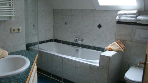 1 hálószoba (2 db ágy, 1 db franciaágy, 1 db babaágy, 1 db kétszemélyes kihúzható ülőgarnitúra), nagy előszoba, jól felszerelt konyha mosogatógéppel, sütő, TV, rádió, fürdőszoba tusolóval és WC-vel, gyönyörű kilátás a környező göstlingi hegyekre.
